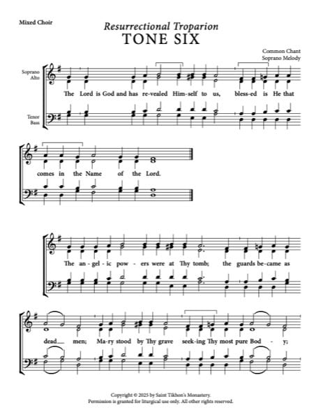 Resurrectional Troparion – Tone 6, Common Chant, Soprano Melody, Mixed, SATB