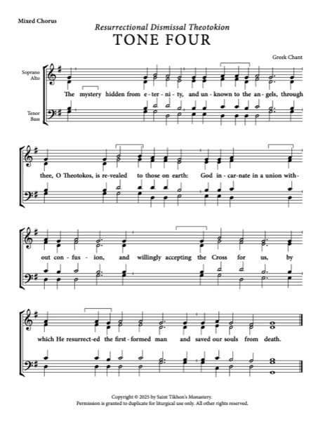 Resurrectional Dismissal Theotokion – Tone 4, Greek Chant, Mixed, SATB