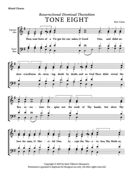 Resurrectional Dismissal Theotokion – Tone 8, Kiev Caves, Mixed, SATB